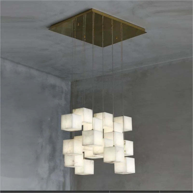 Alabaster Cubic Round Pendant Light For Dining Table