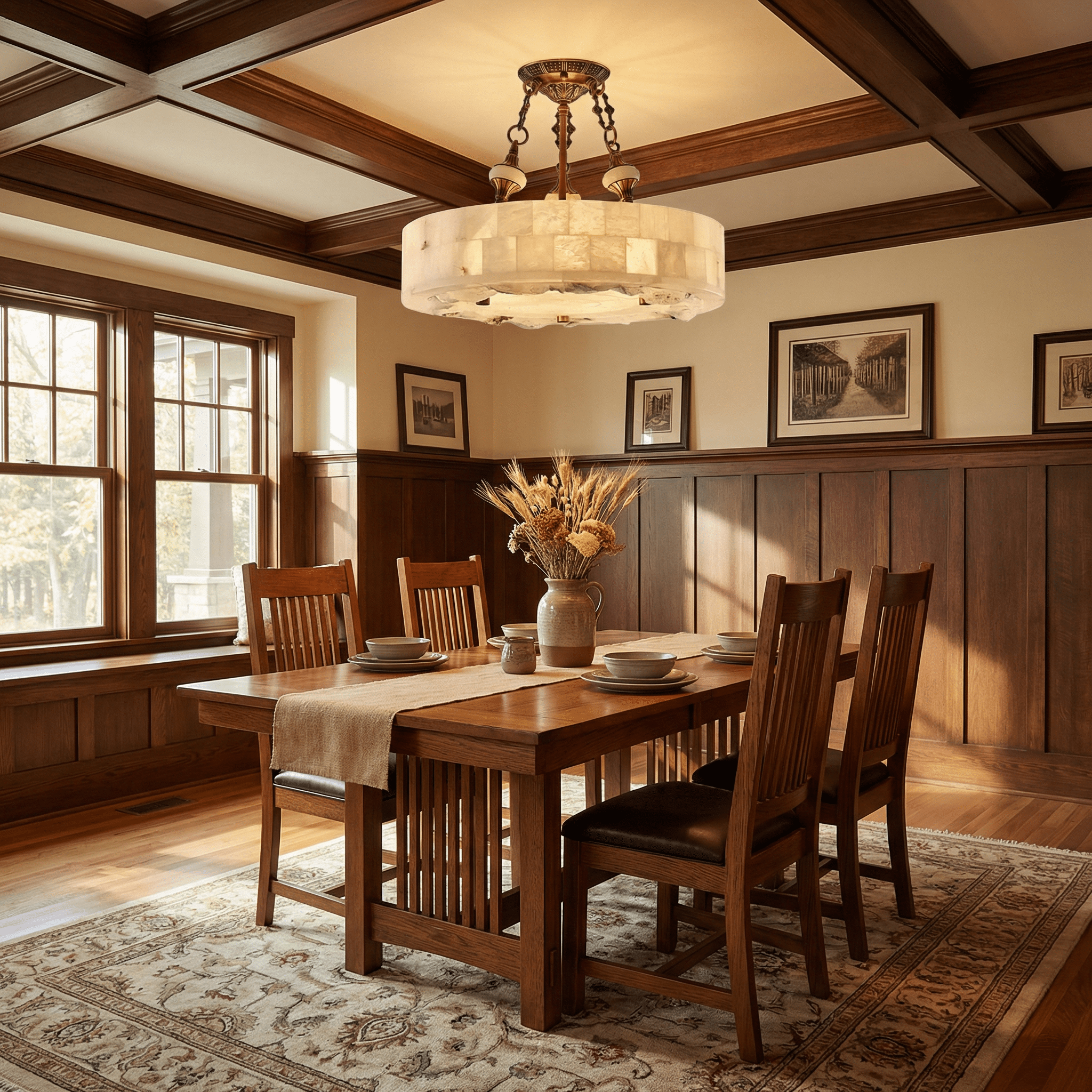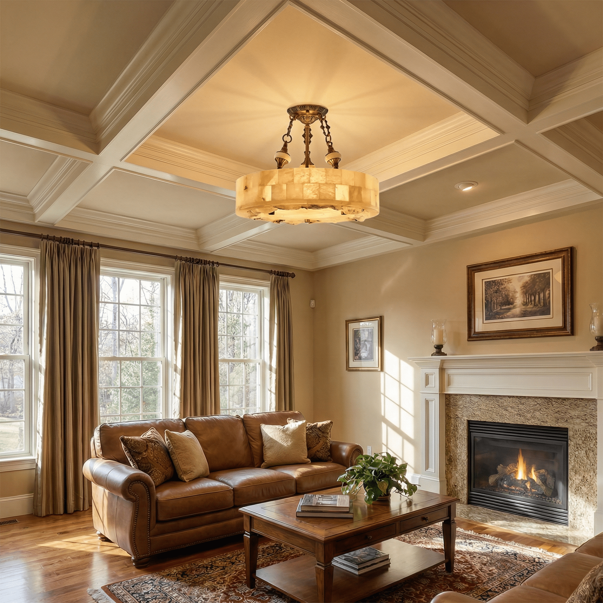 The Vakkerlight Aurevia Alabaster Chandelier is a sculptural statement of timeless luxury and natural elegance. Formed from hand-cut alabaster stone panels arranged in a luminous circular structure. this chandelier radiates a soft. warm glow that transforms any space into a refined sanctuary. The ornate brass framework. classic chain suspension. and decorative ceiling mount add a sense of European heritage craftsmanship. blending old-world artistry with architectural presence. Designed by Vakkerlight. this chandelier is ideal for dining rooms. living spaces. hotel lobbies. and grand entryways. where light becomes atmosphere and stone becomes art. Each piece of alabaster features unique natural veining. making every fixture a one-of-a-kind expression of craftsmanship. warmth. and enduring design.