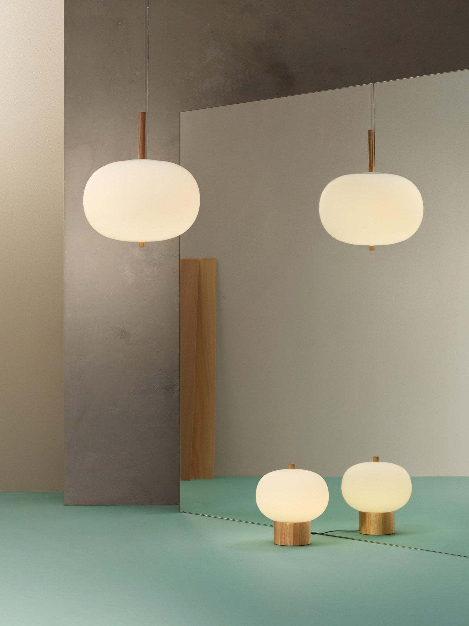 Ilargi lamp takes shape in a subtle and minimalist piece where a wooden wand sits between traditionally hand-blown glass spheres.Its warm. timeless design provides soft. pleasant light that adapts to professional and domestic settings. creating comfortable. natural spaces.