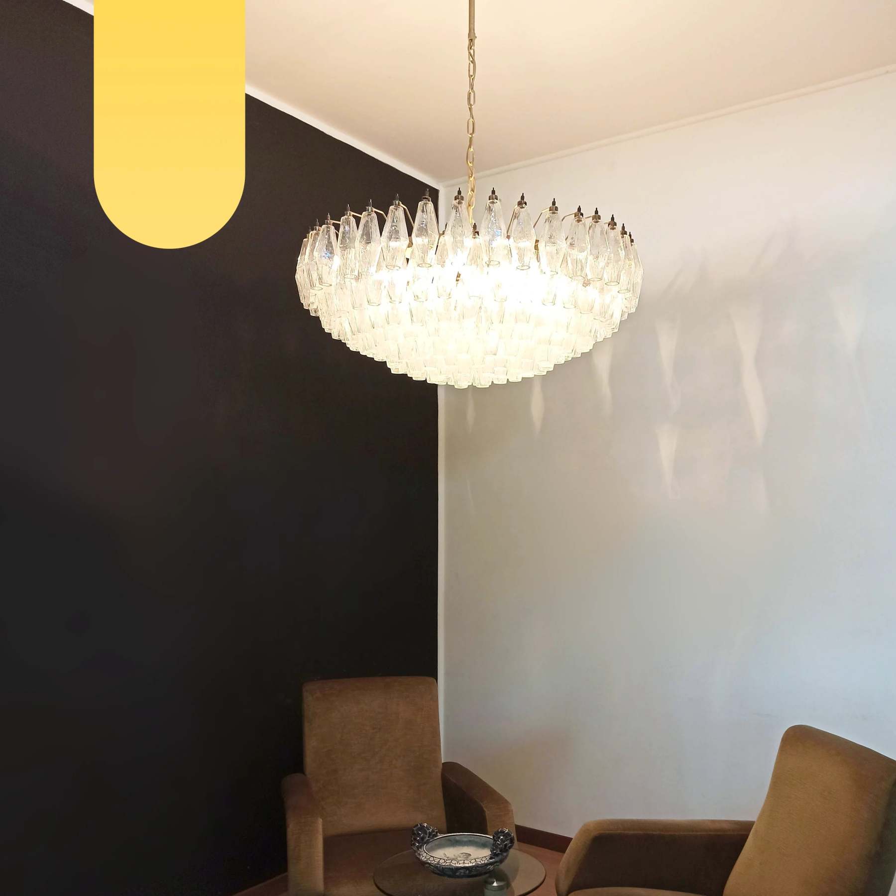 Murano Faceted Transparent Glass Chandelier
