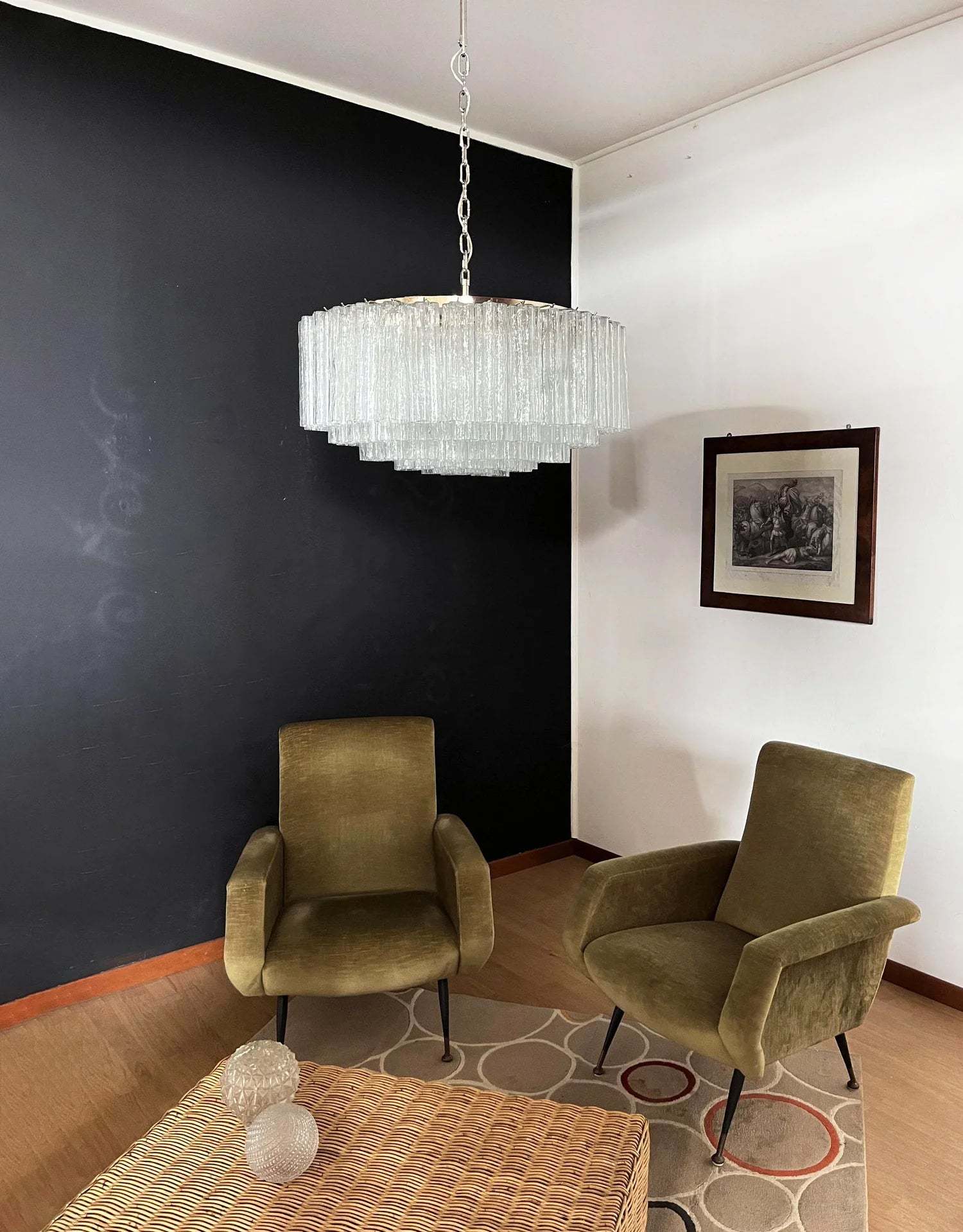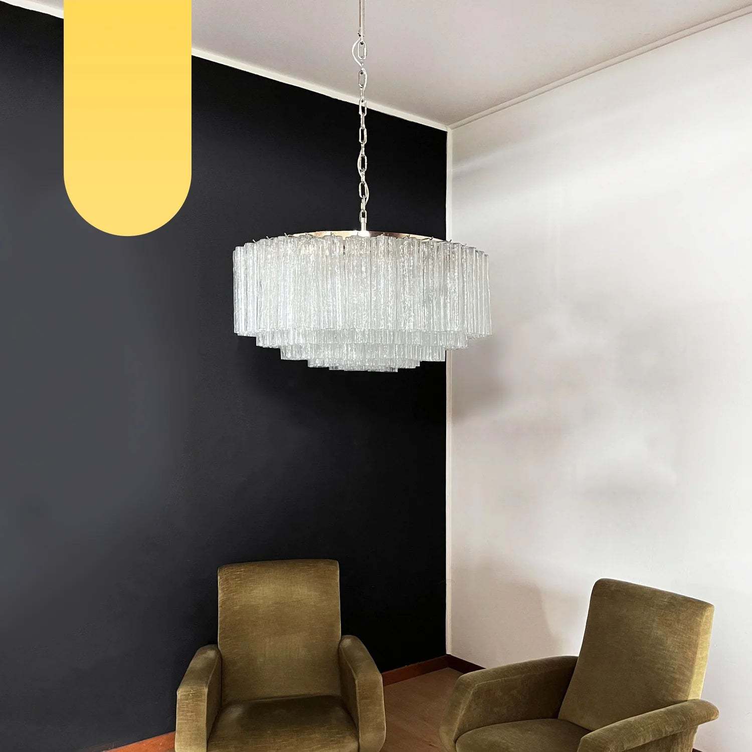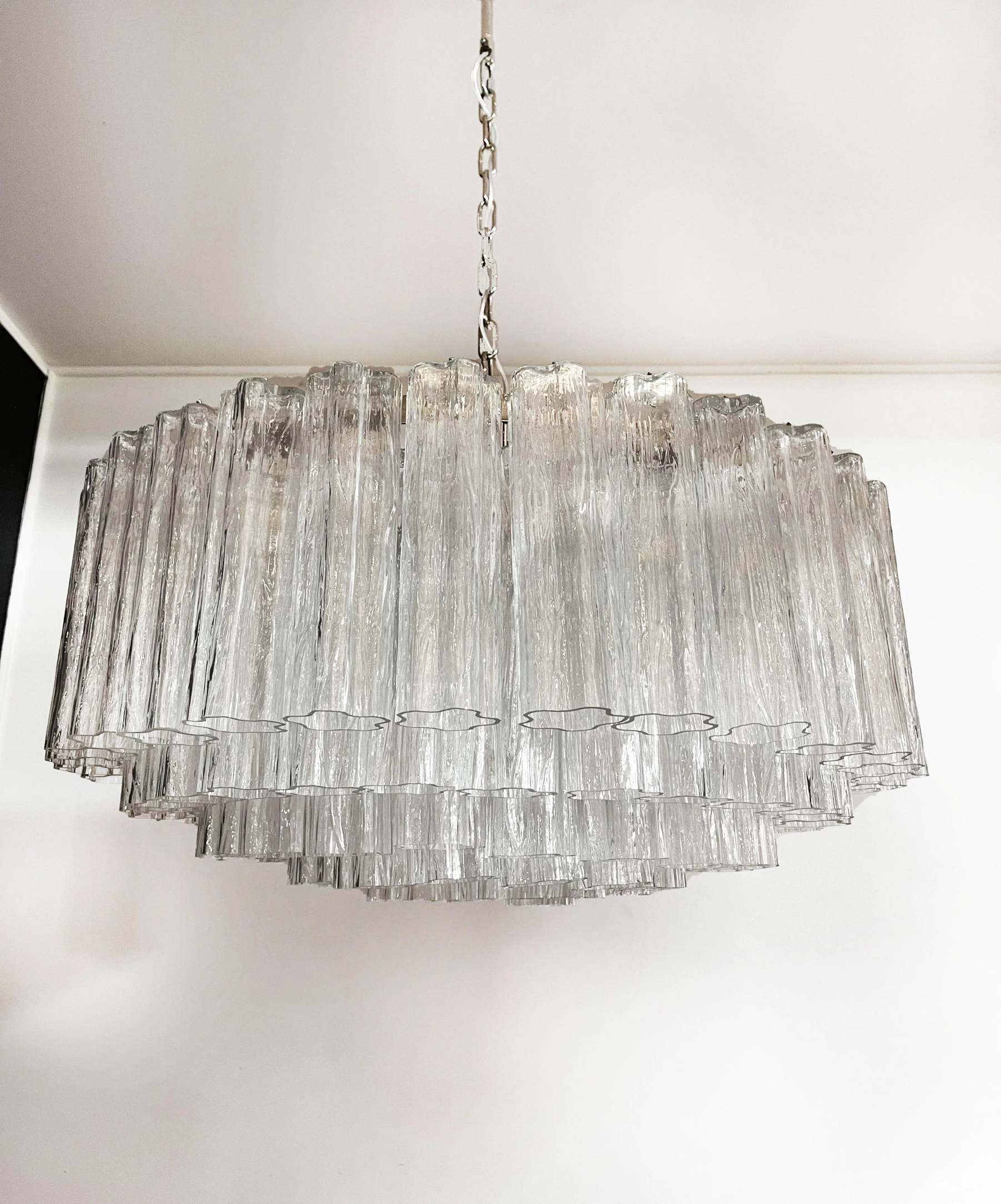 Murano Large Transparent Glass Tube Chandelier
