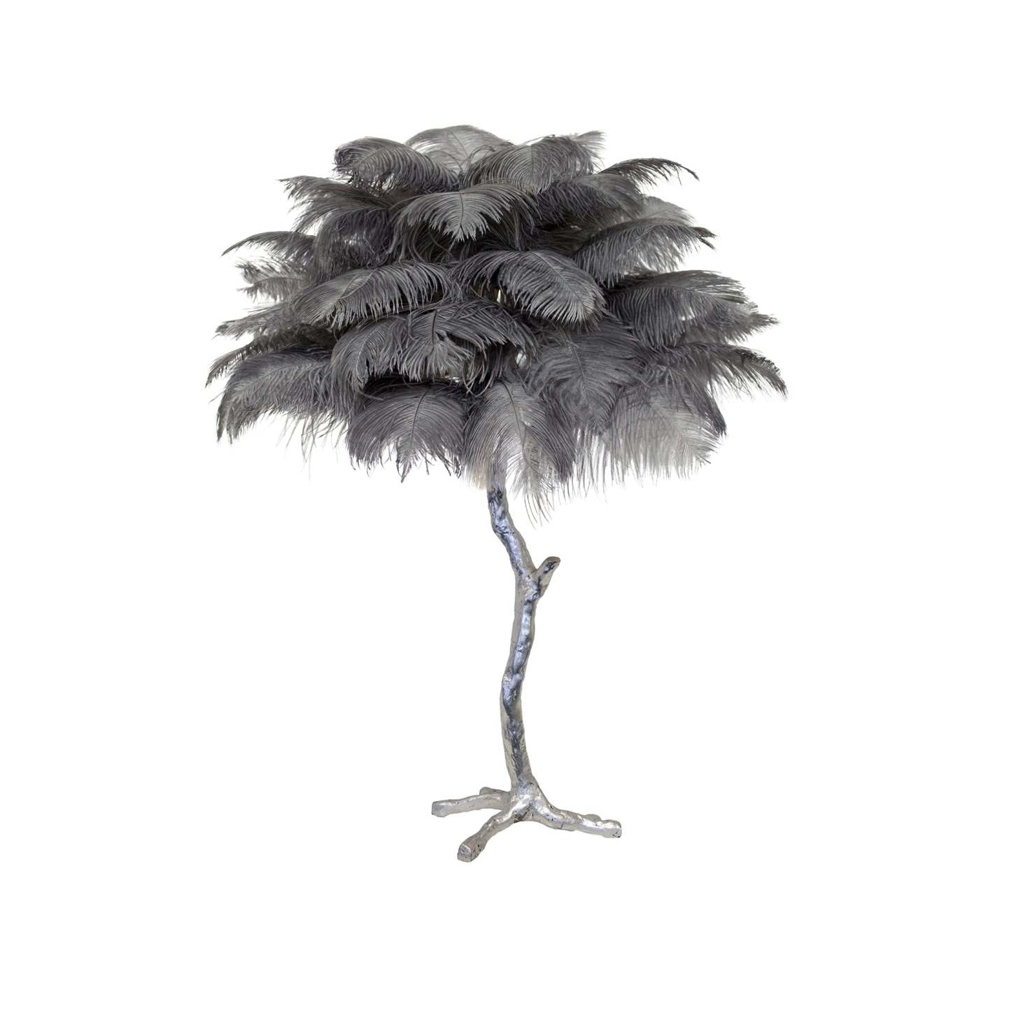 An illuminating palm tree. resplendent with exquisite ostrich feather foliage. the feather table lamp takes center stage in any luxury setting and delivers the ultimate Midas touch to Hollywood regency decors. A pièce de résistance among standing lamps. this lighting work of art commands attention to its exquisite design and intricate craftsmanship.