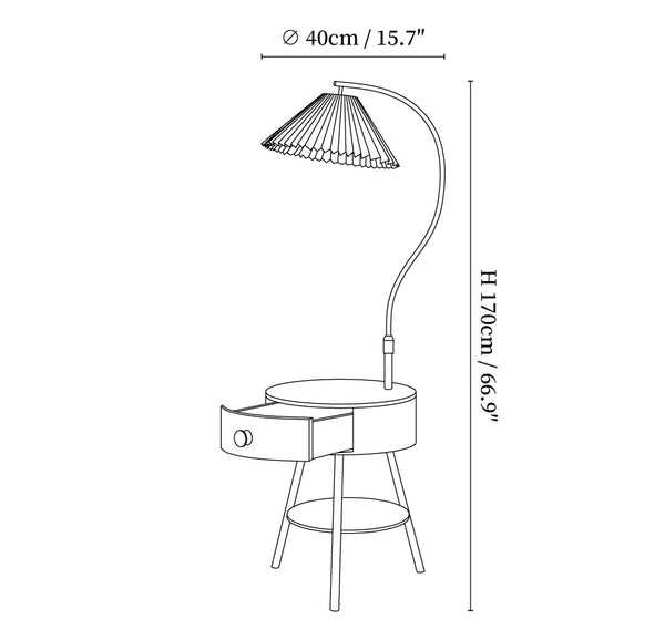 Pleated Nightstand Floor Light with Fabric Shade