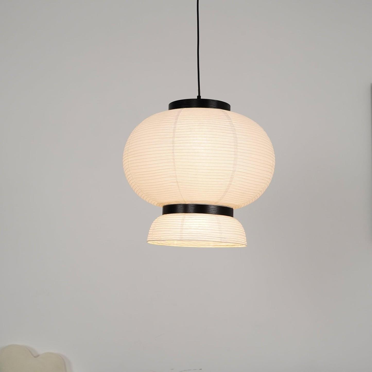 Formakami pendant light is a modern take on classic Asian paper lanterns. Our aim was to create a light pendant that illuminates people's lives both literally and symbolically. The white color of the shade emphasizes the lightness of rice paper and the open bottom maximizes the amount of light. Black stained oak rings give Formakami's handmade shade a pleasant rhythm. known for his playful designs. has combined round shapes in different sizes. and the end result is a collection of three unique pendant lights.