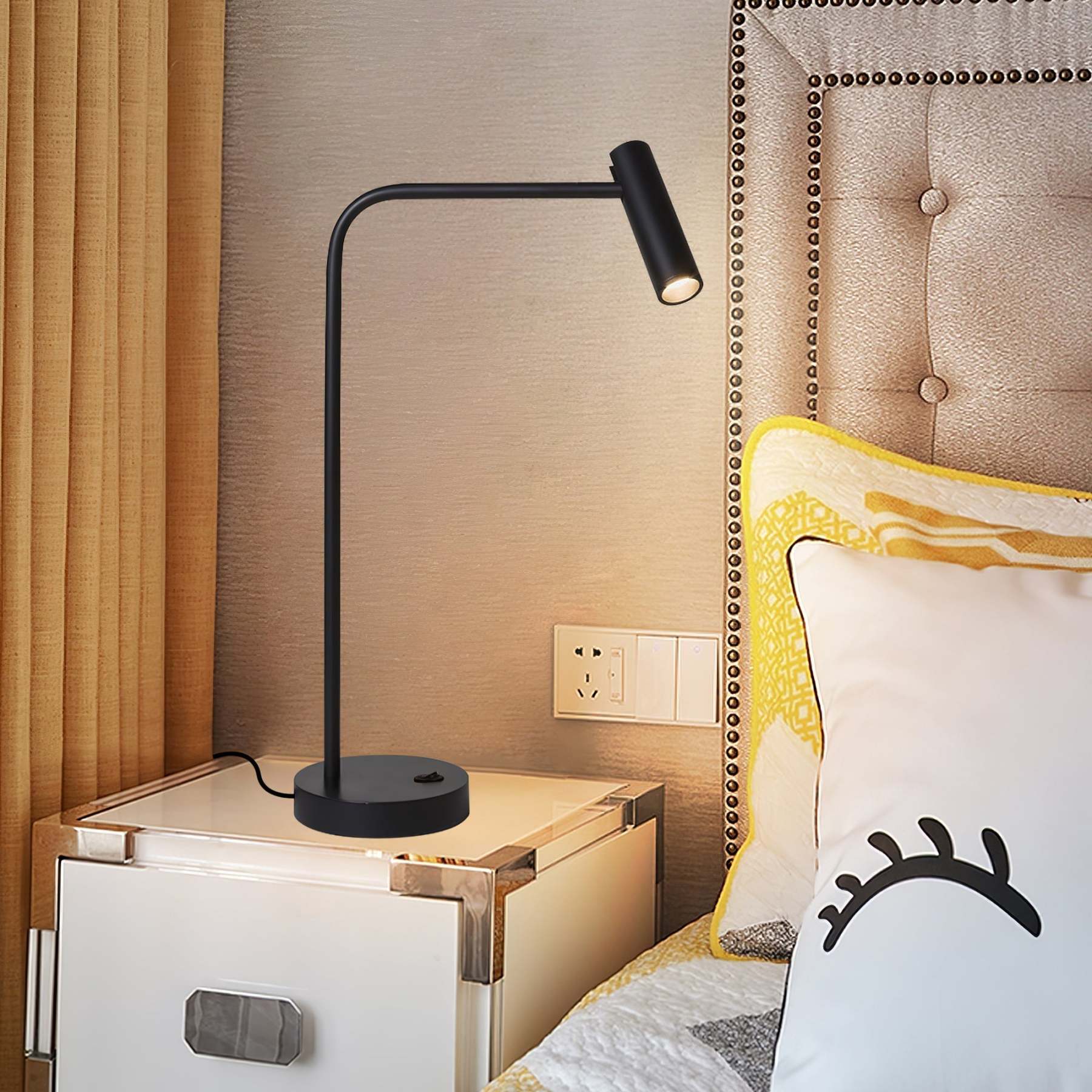 Vintage quirky-chic meets contemporary cool in the Skinny Table Lamp. the Skinny Table Lamp rests on a round base and extends upward on a slender stem. culminating in a cylindrical light source.