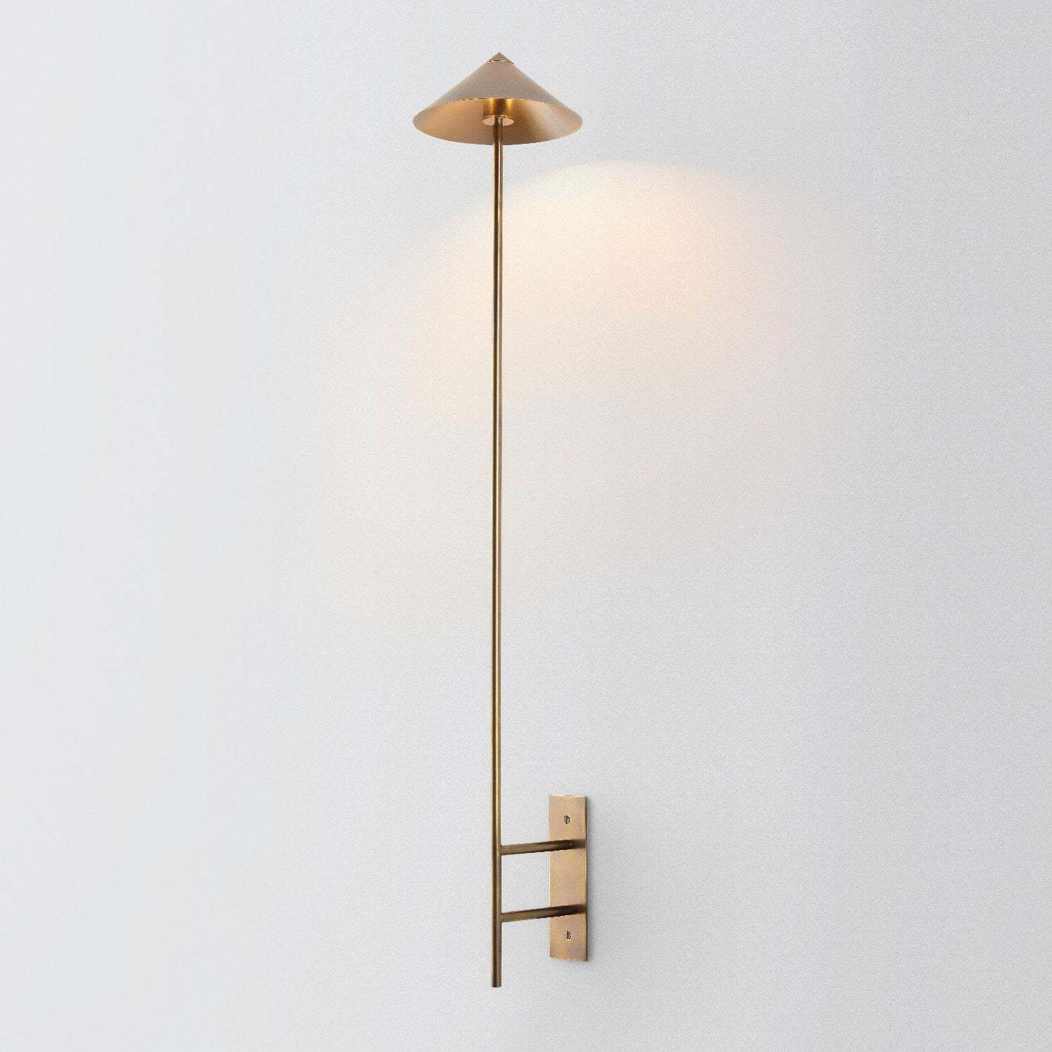 Illuminate your space with the Stack Up LED Sconce. designed to provide ambient lighting for walls and ceilings. Featuring exquisite polished brass its unique hand-finished surfaces add a touch of elegance to any room. The Pyramid Scheme collection showcases tiered conical forms supported by a linear framework. offering a pragmatic yet sophisticated lighting solution. Ideal for residential or commercial spaces. this wall lamp is both functional and artistically appealing.