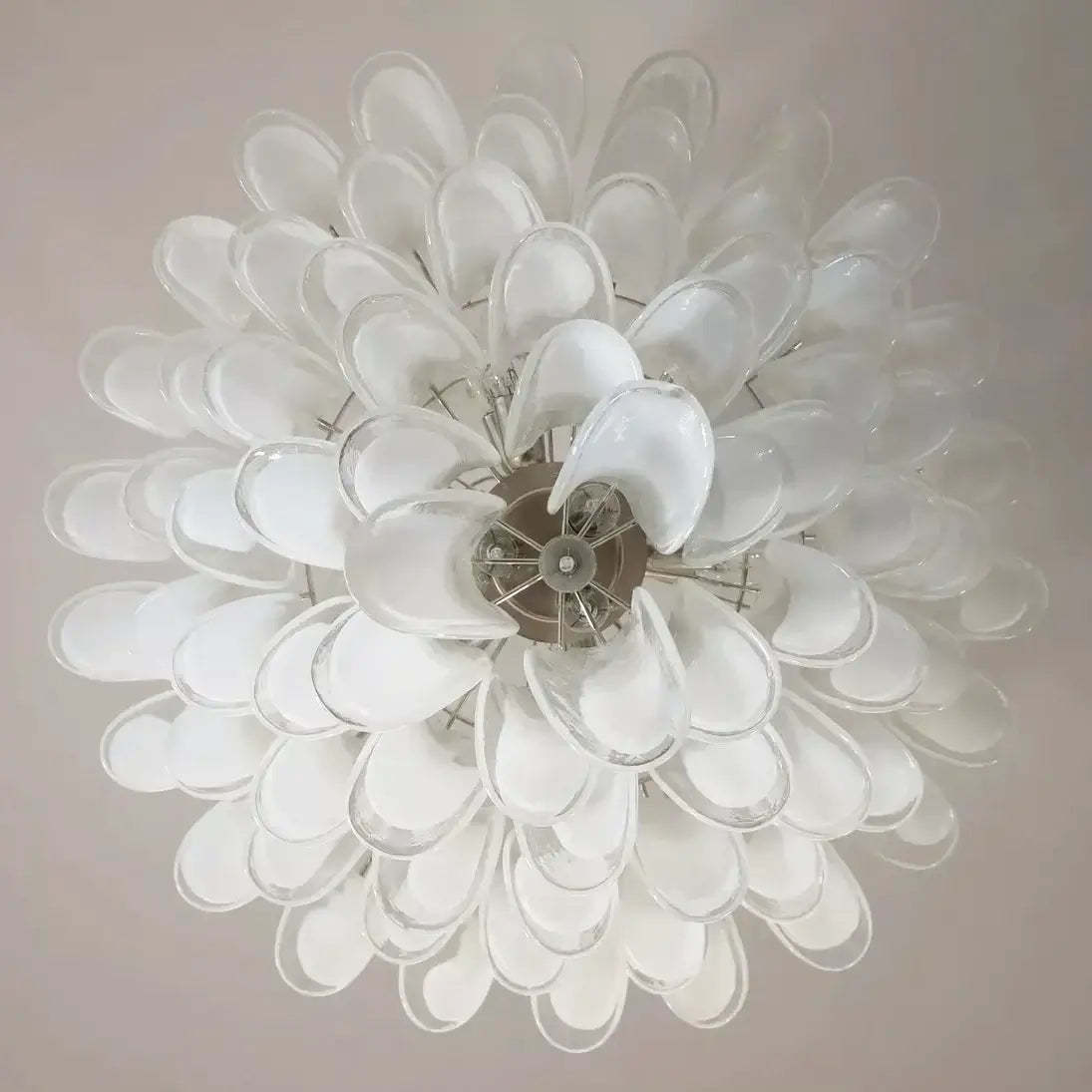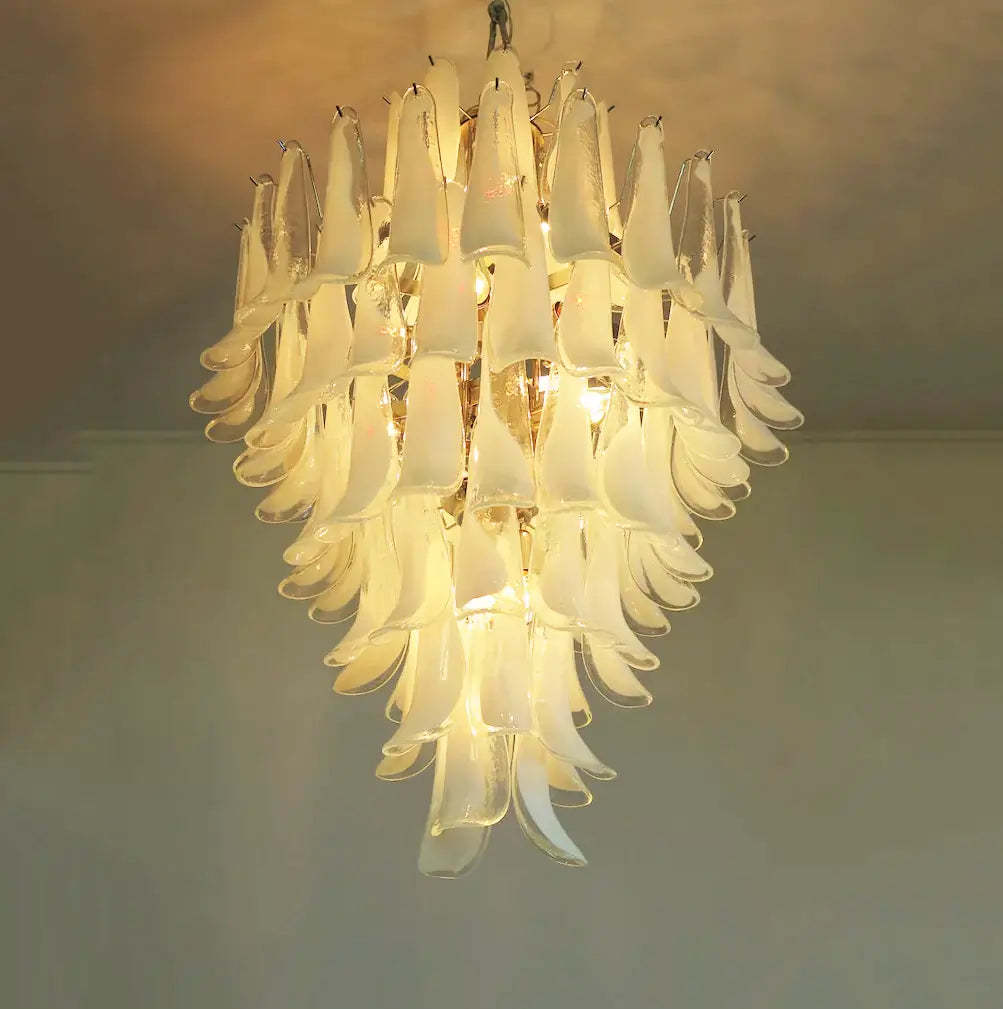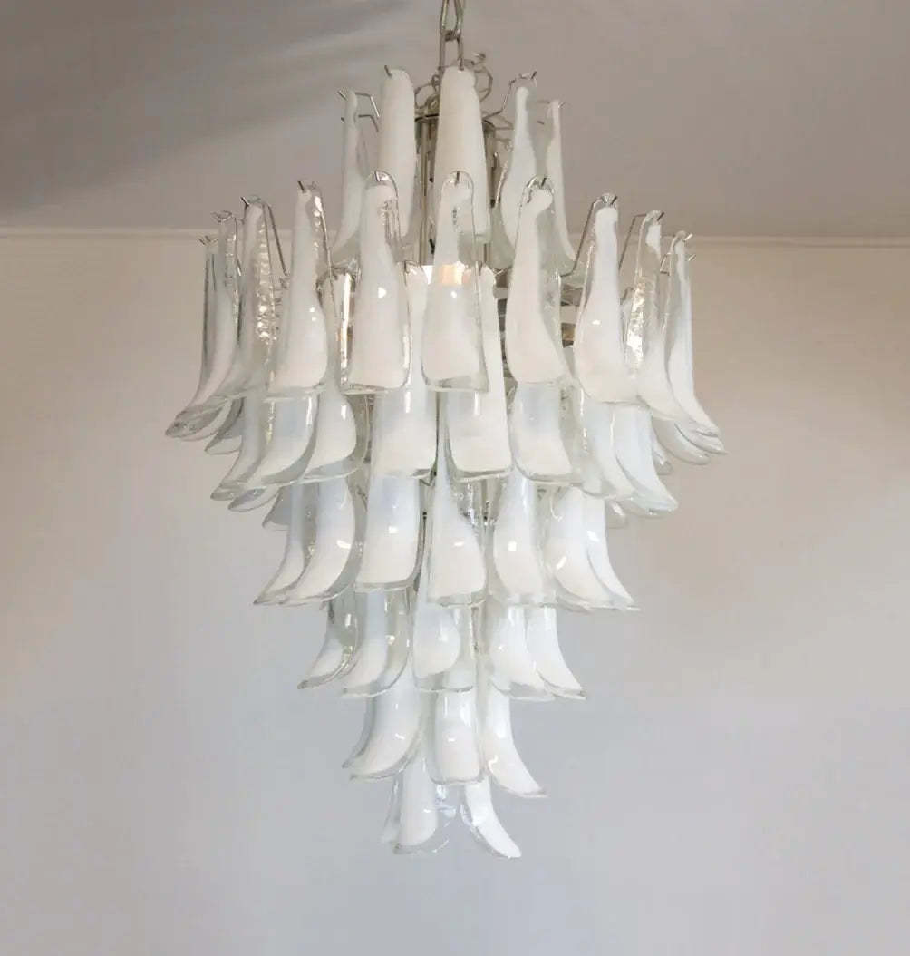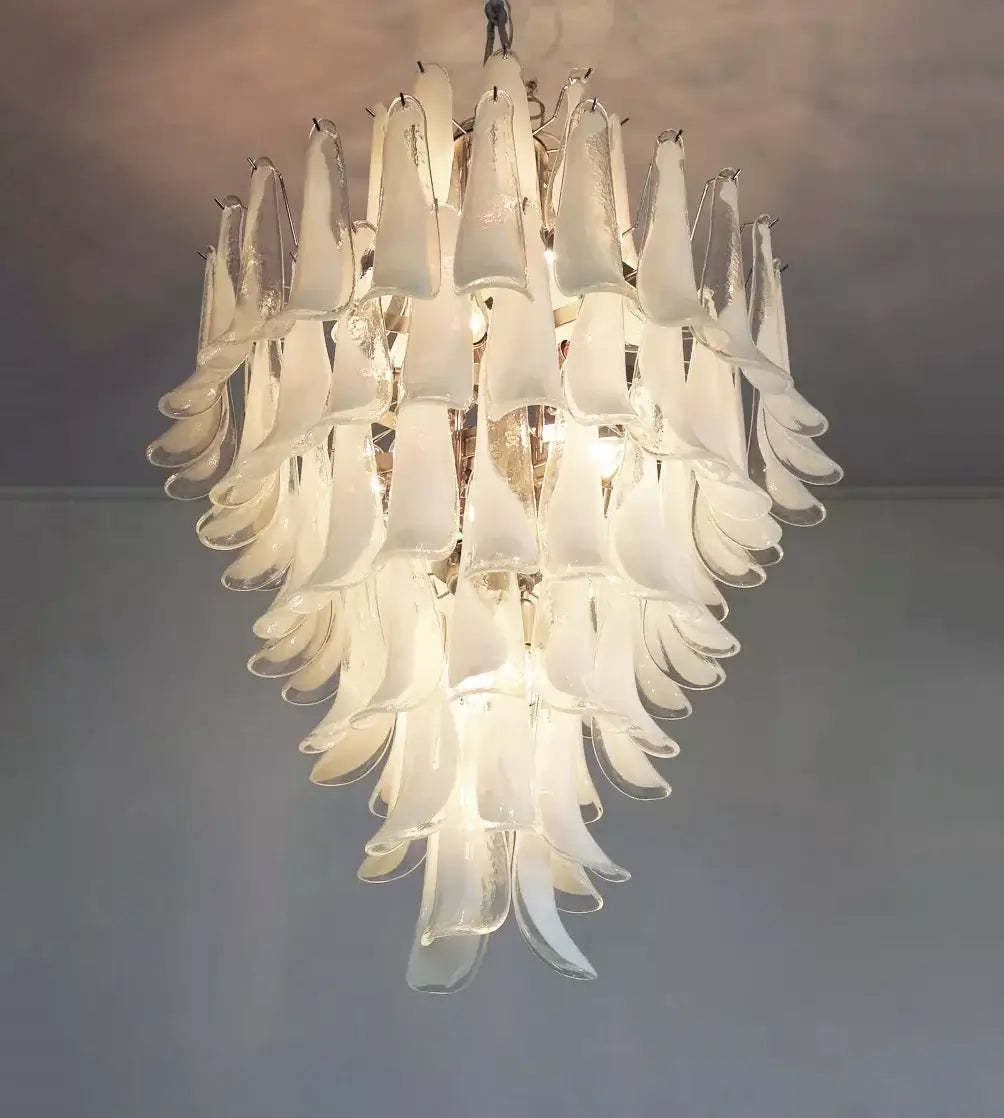 Stunning Murano White Glass Petals Chandelier
