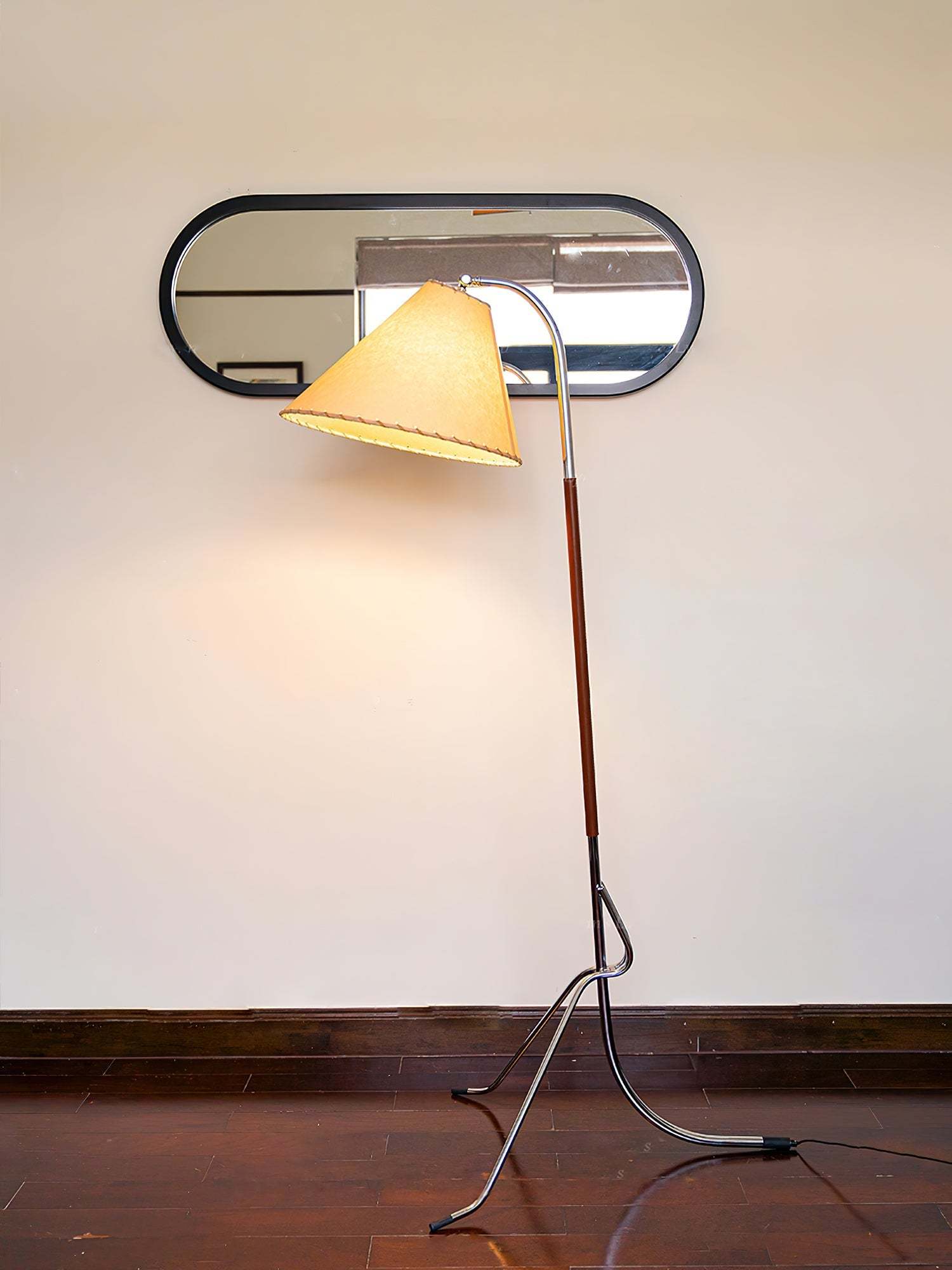 This floor lamp is inspired by the minimalist elegance of mid-century modern design. The slender metal tripod base not only provides stability but also adds a touch of industrial charm. The arched neck gracefully curves to support a sleek. conical lampshade. creating a harmonious blend of form and function. This design evokes a sense of balance and simplicity. making it a perfect statement piece for any contemporary or minimalist living space.