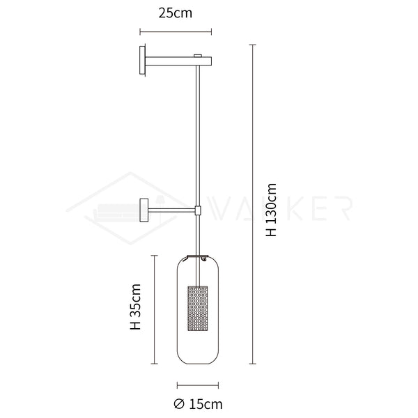 The majestic Vadim wall lamp sports a generous glass body which contrasts with its fine steel rod. Suspended in the air. the perforated cage emits a soft light and projects graphics reflections on the walls.