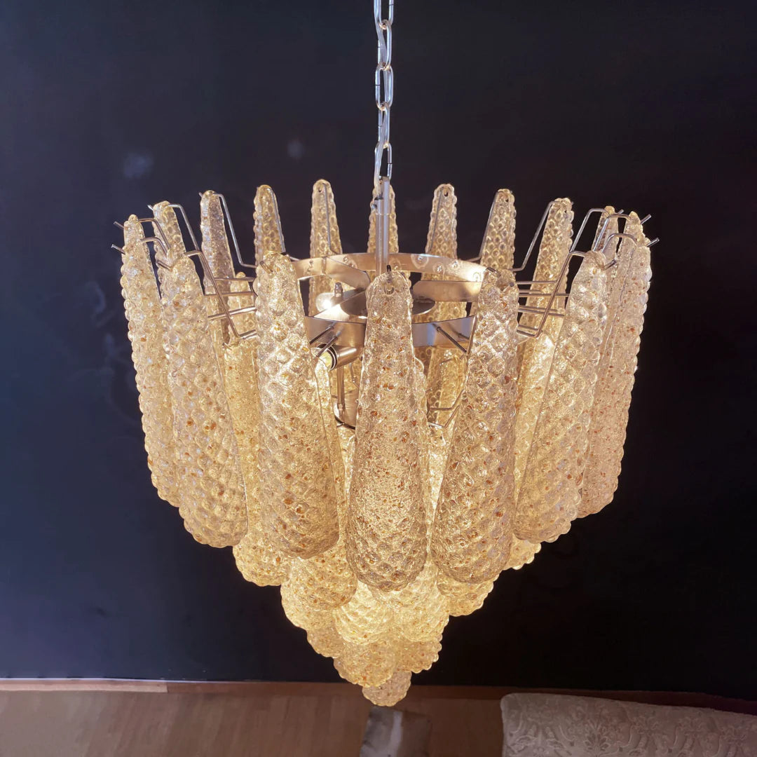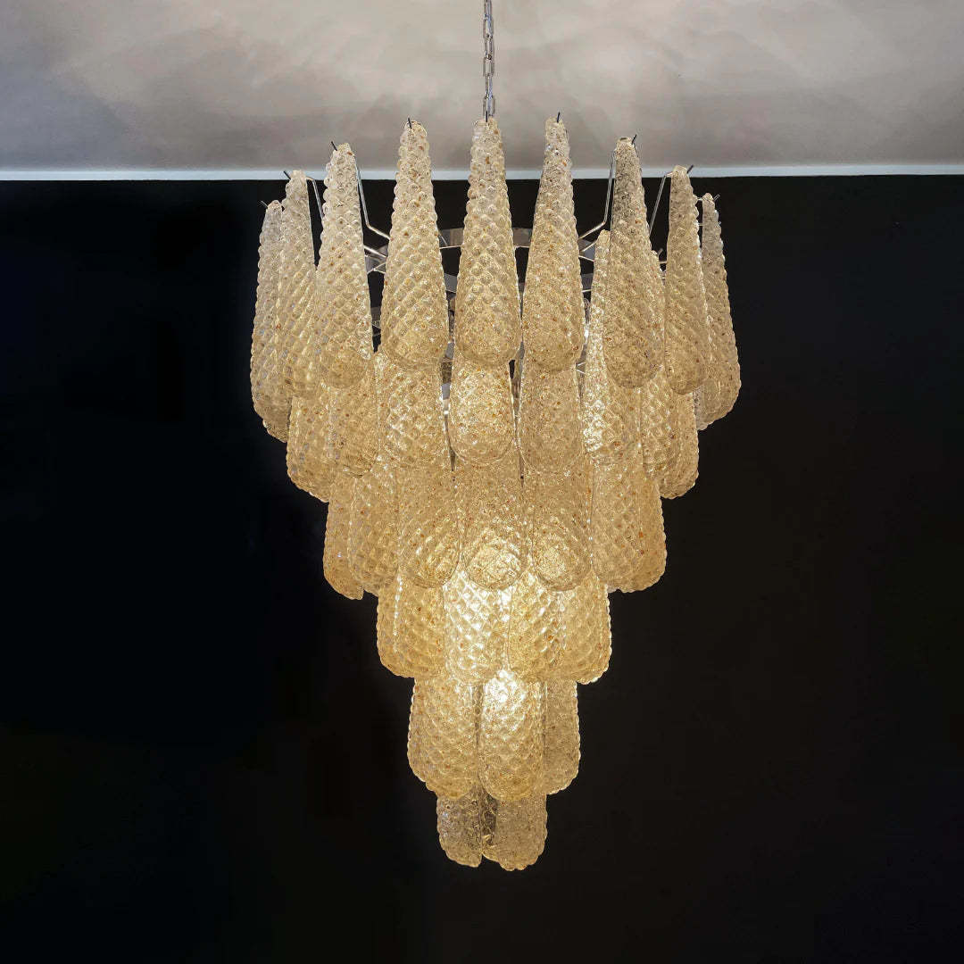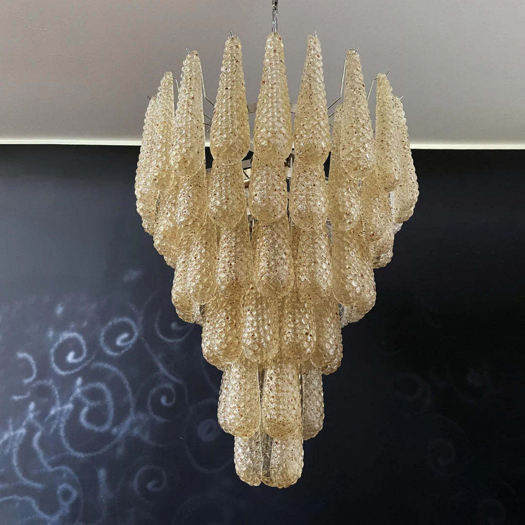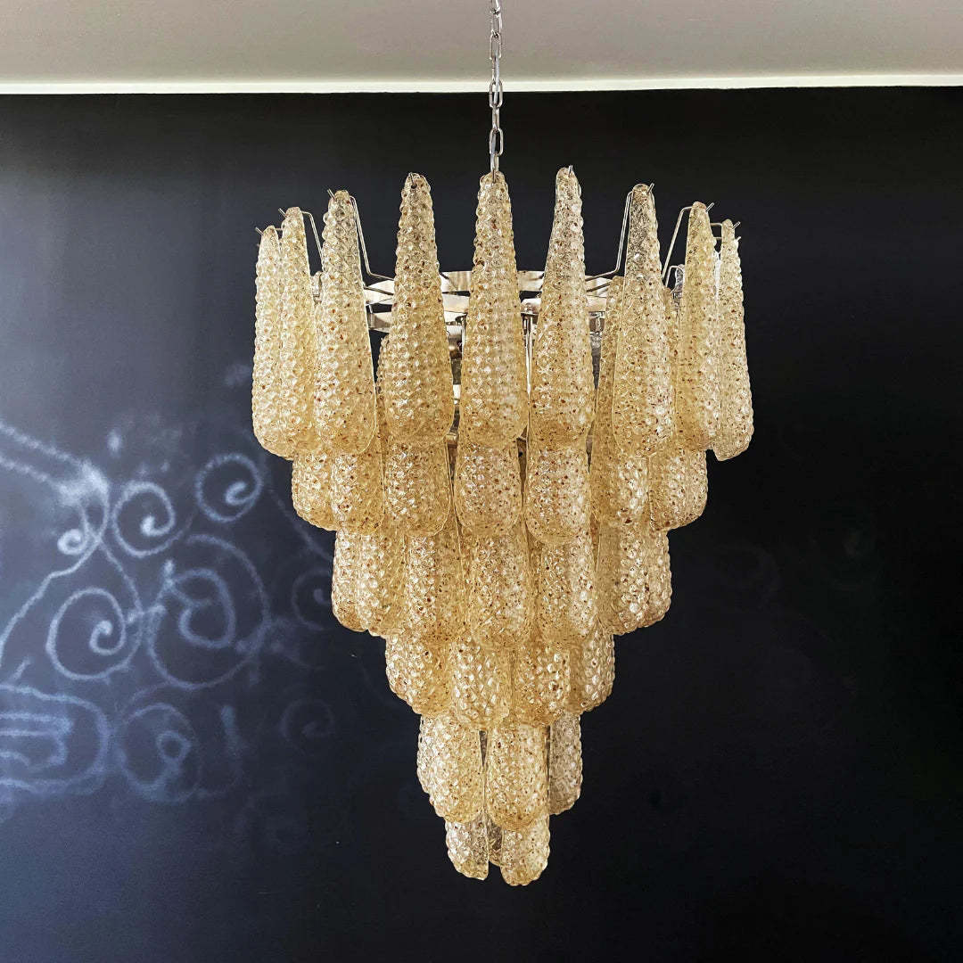 Vintage Amber Murano Glass Petals Drop Chandelier