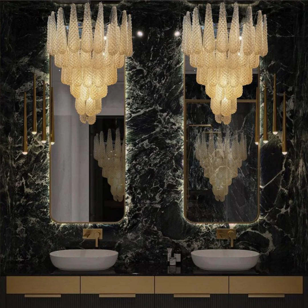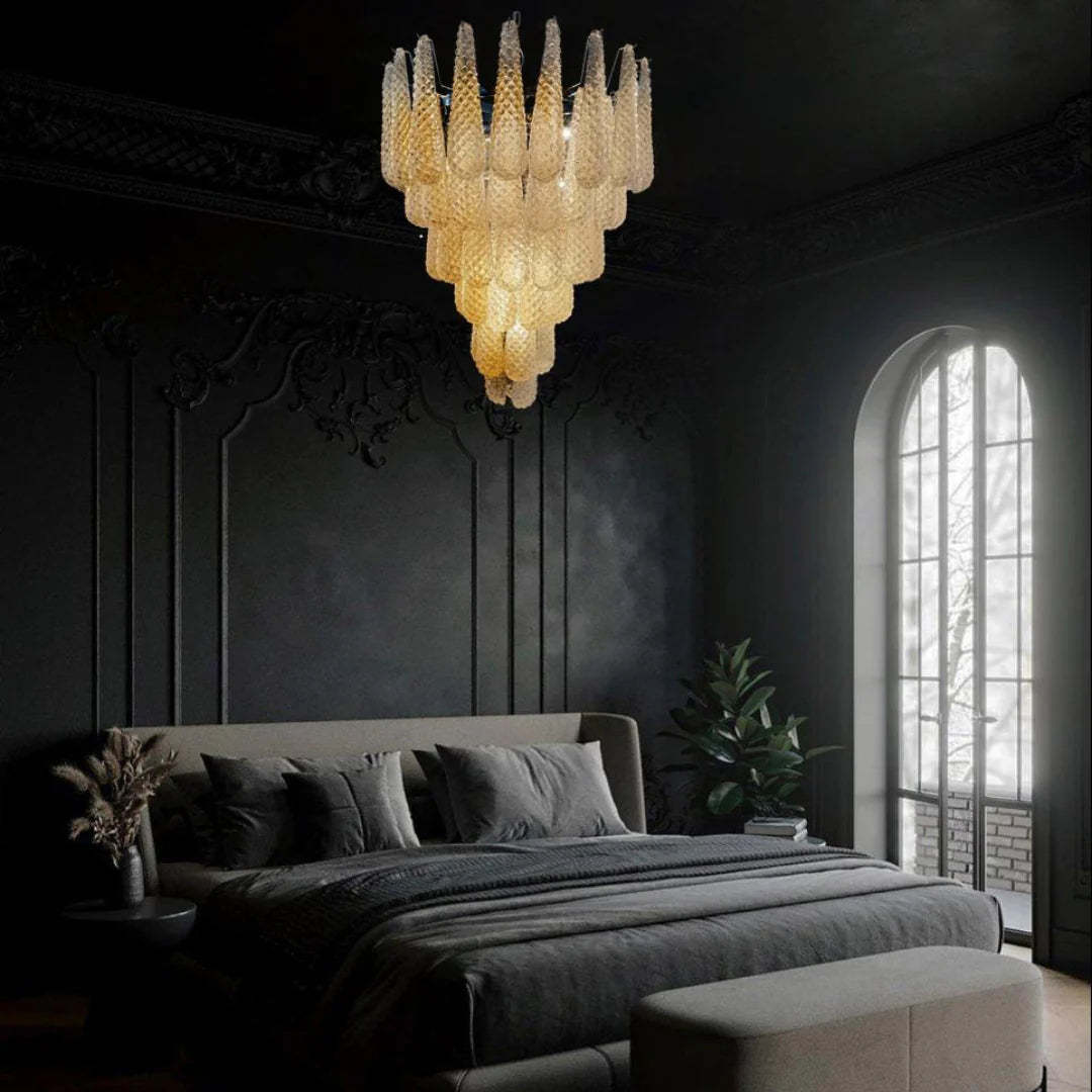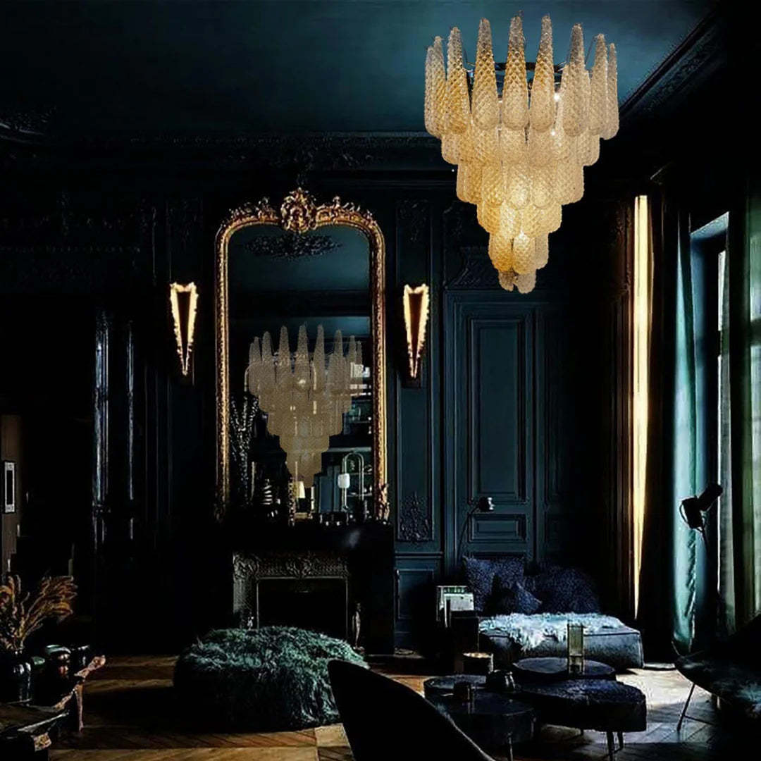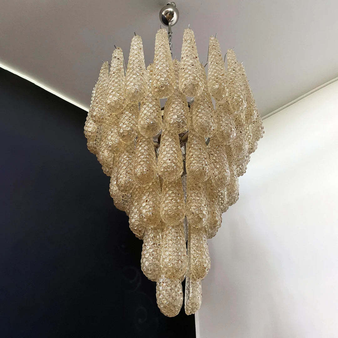 Vintage Amber Murano Glass Petals Drop Chandelier