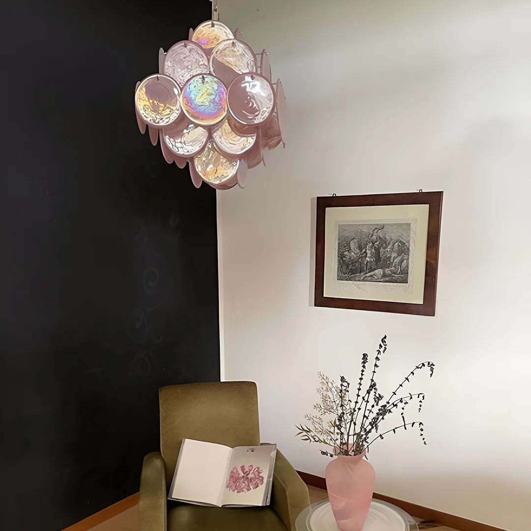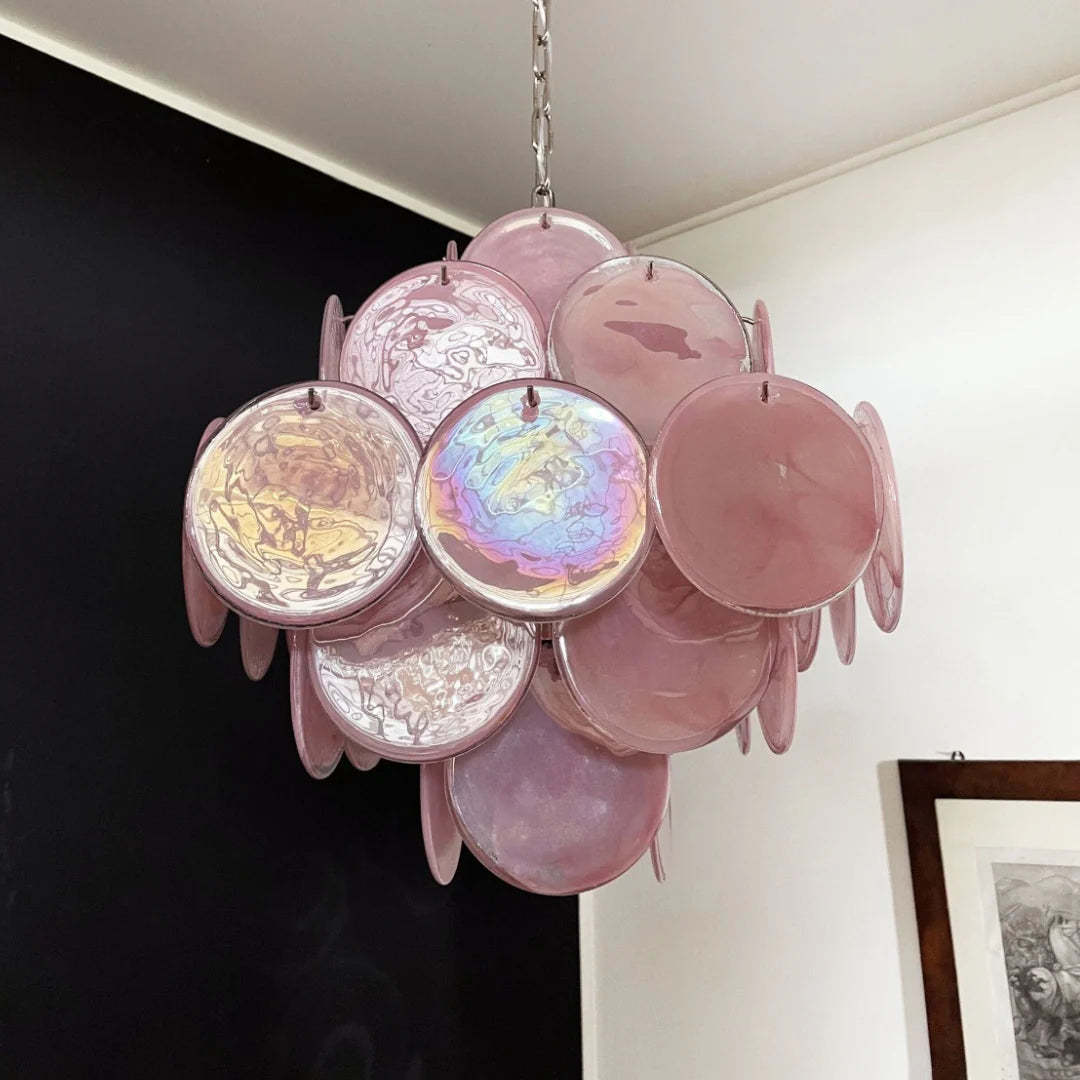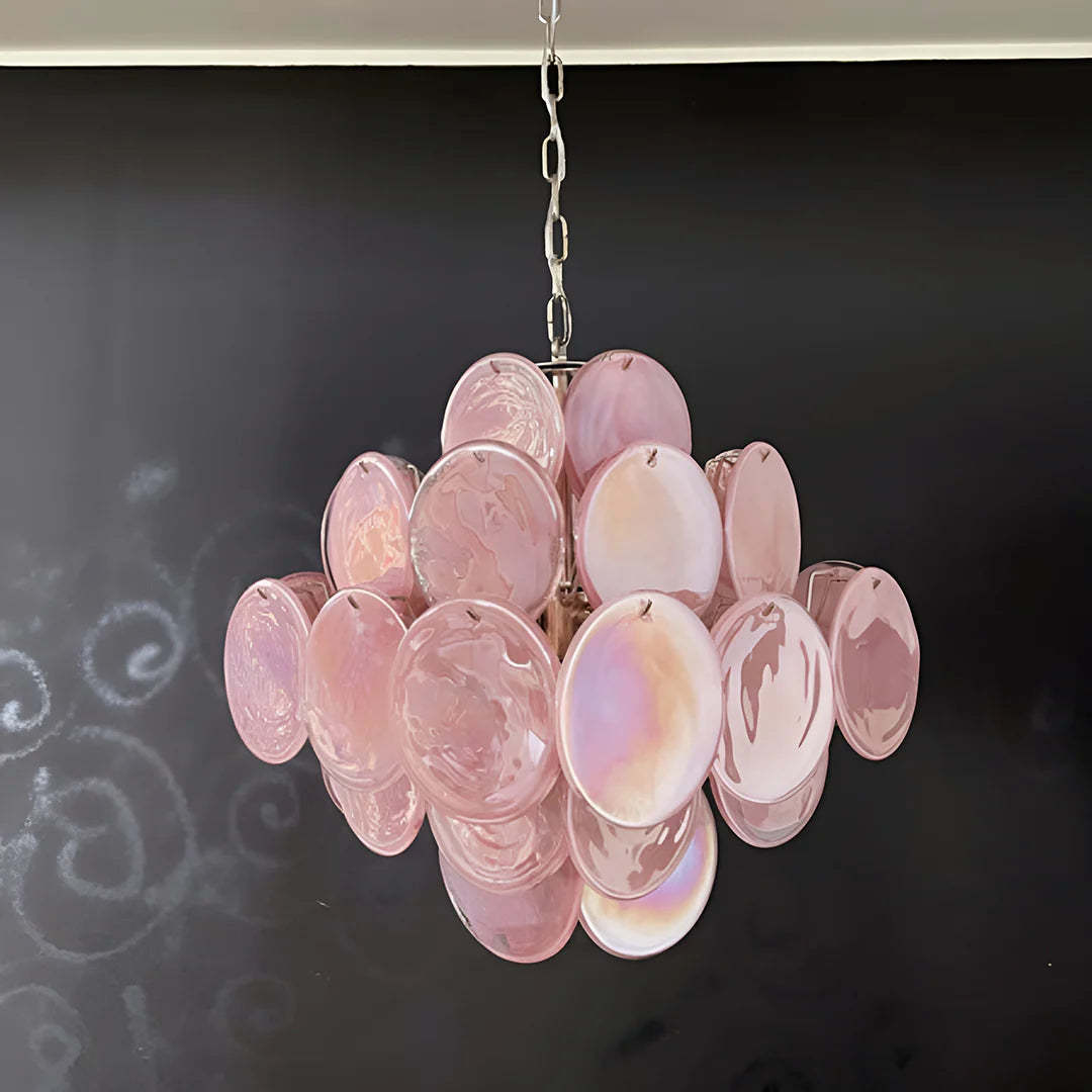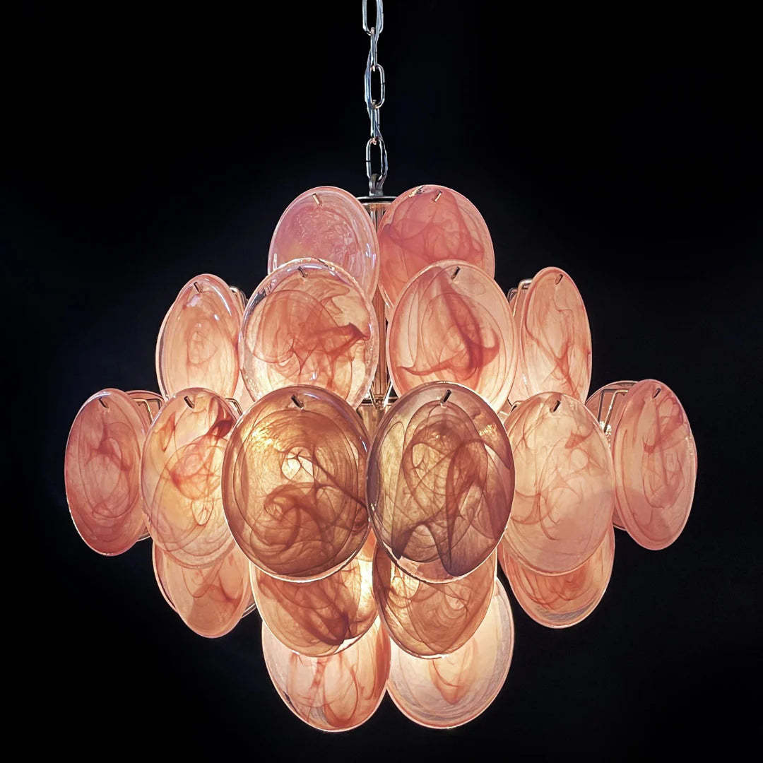 Vintage Murano Pink Disks Chandelier