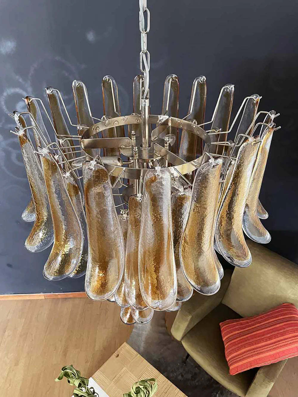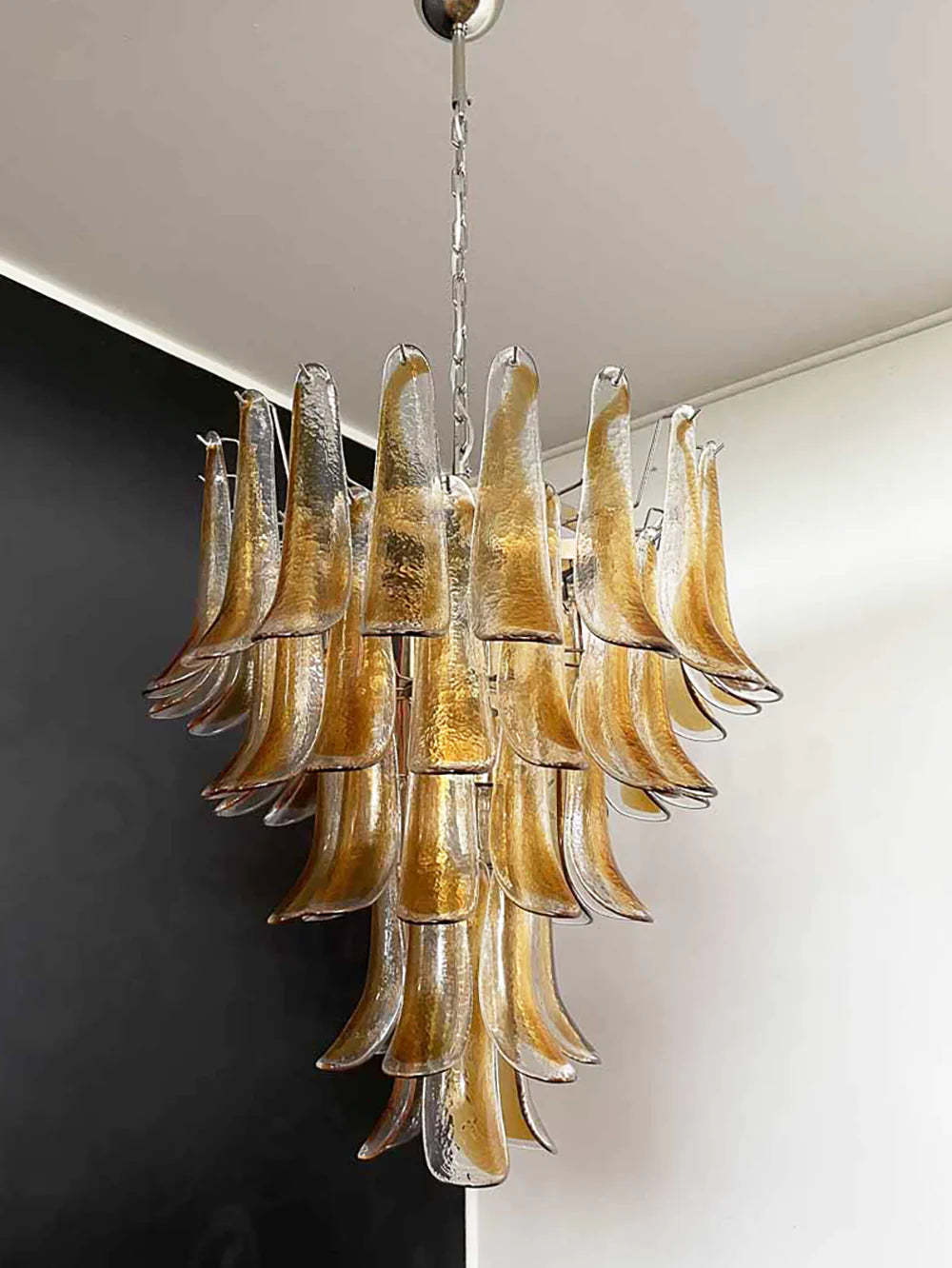 Vintage Transparent Amber Murano Petals Chandelier