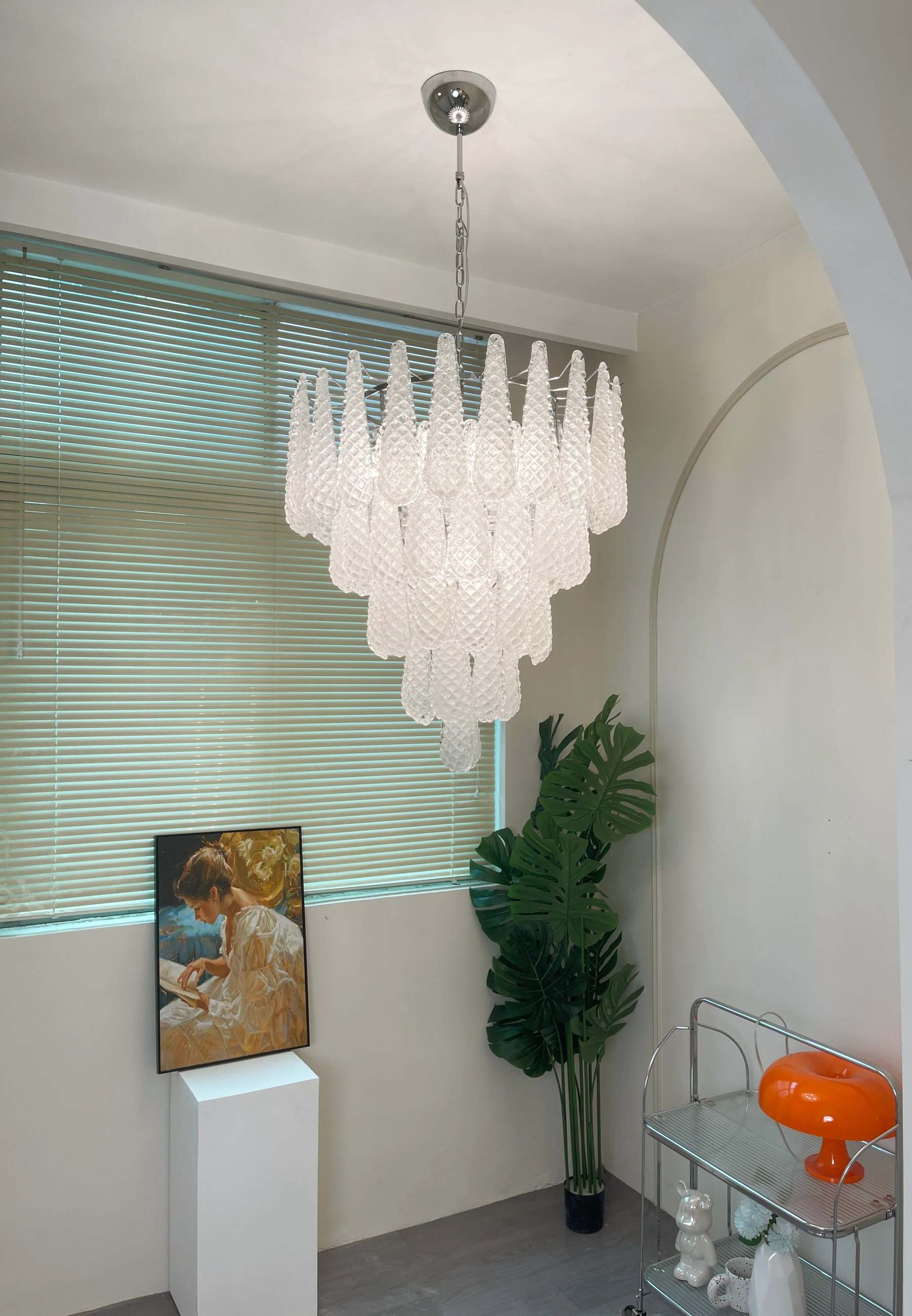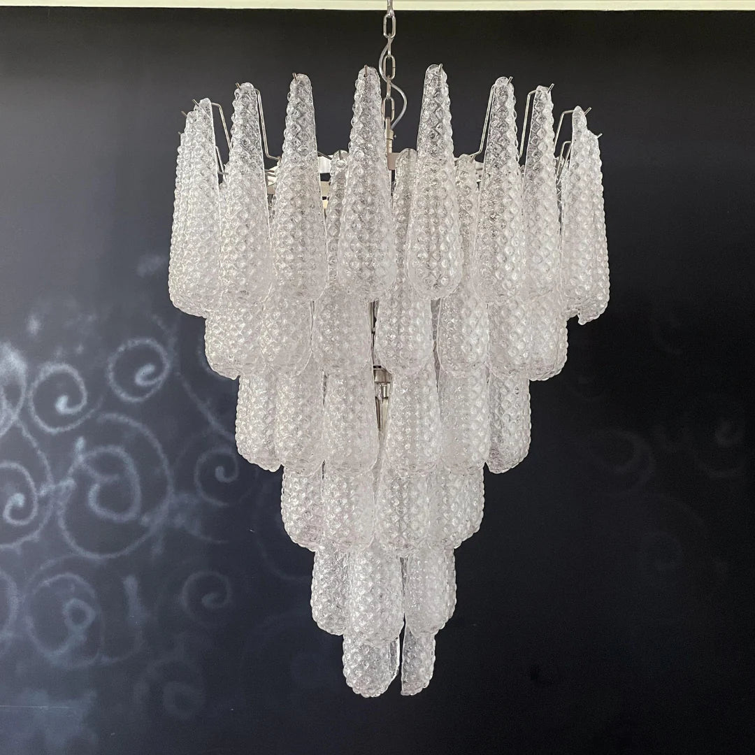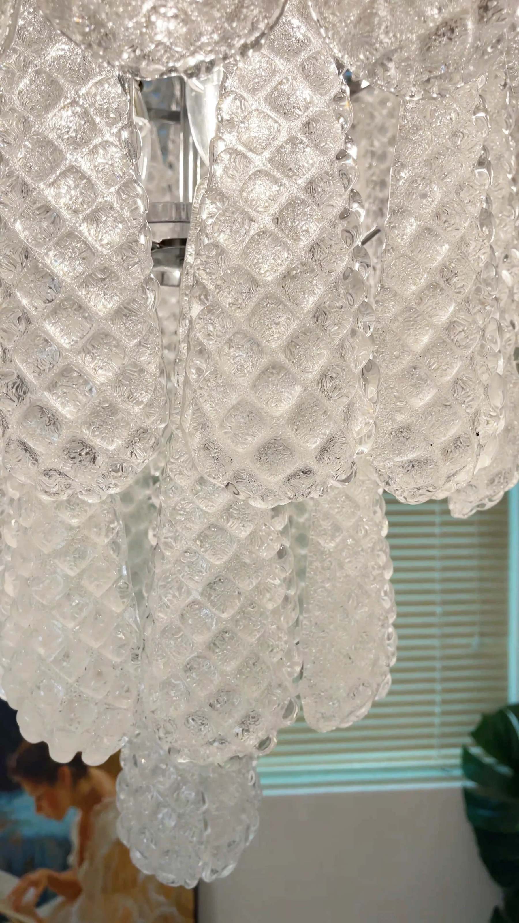 Vintage Transparent Murano Glass Petals Drop Chandelier