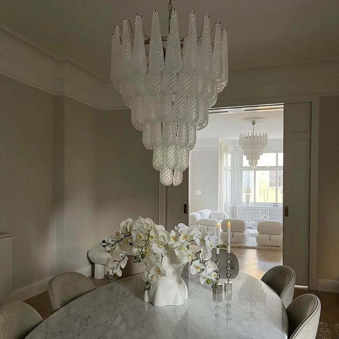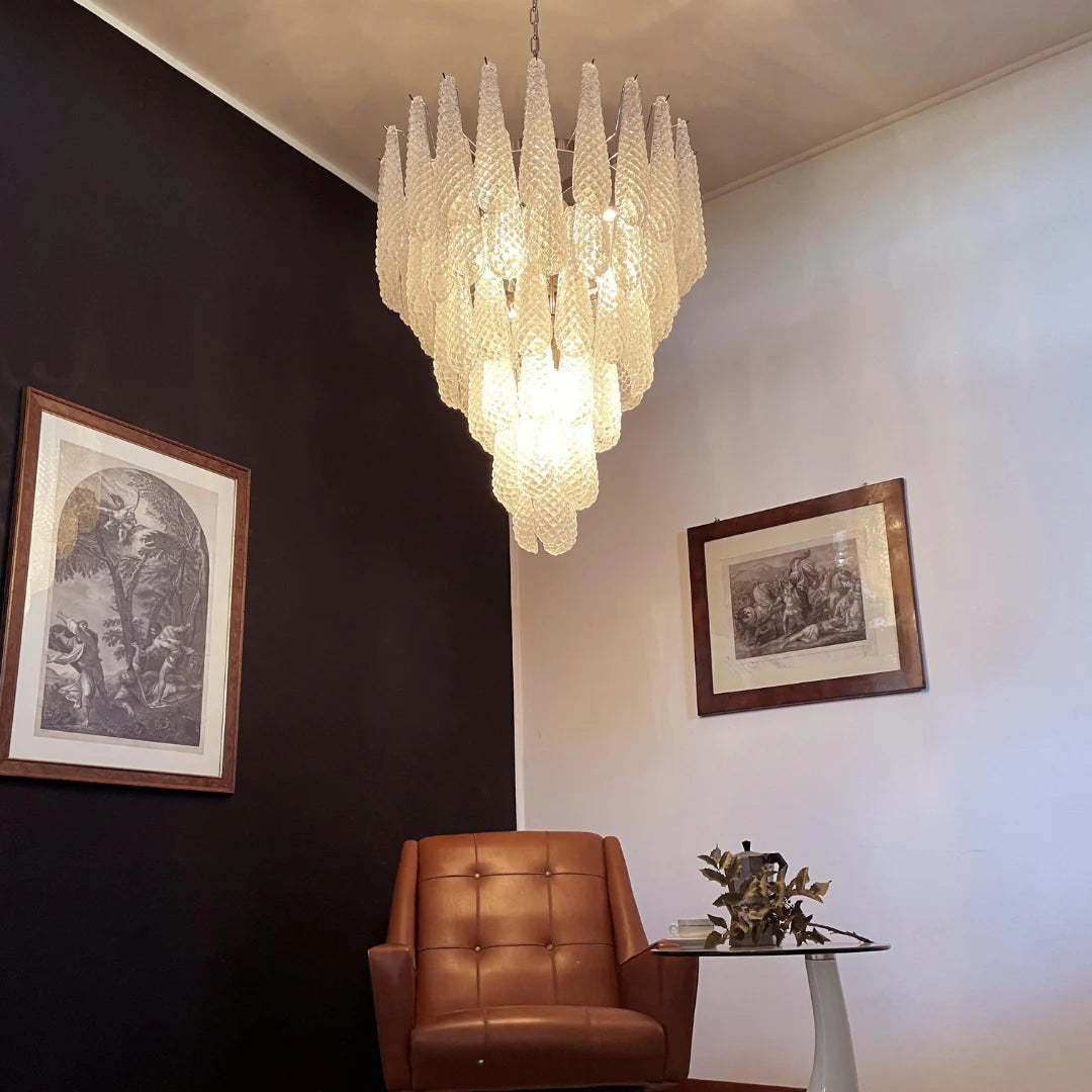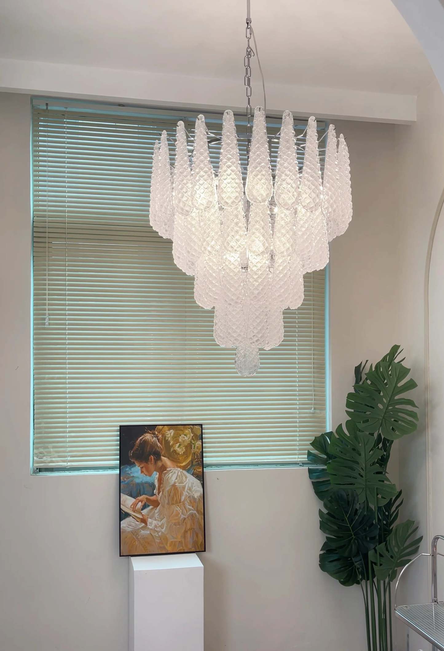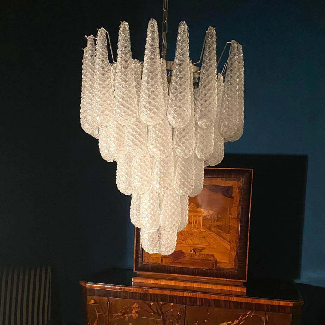Vintage Transparent Murano Glass Petals Drop Chandelier